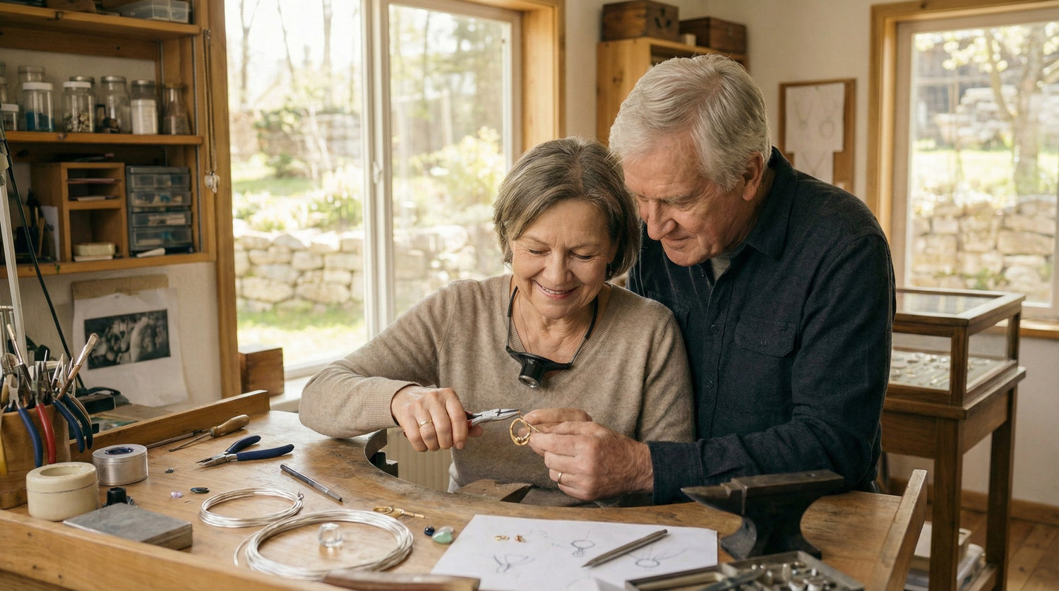 Ich bin Anke, und gemeinsam mit Klaus erschaffen wir Ankes Schmuck. Unsere Stücke sollen nicht nur schön sein, sondern etwas in Ihnen auslösen: Stärke, Ruhe, Selbstvertrauen. Jedes Schmuckstück wählen wir mit Liebe zum Detail und echter Absicht aus. Für uns ist das mehr als ein Shop. Es ist ein Teil unserer Geschichte, den wir mit Ihnen teilen dürfen. Danke, dass Sie Teil davon sind.
