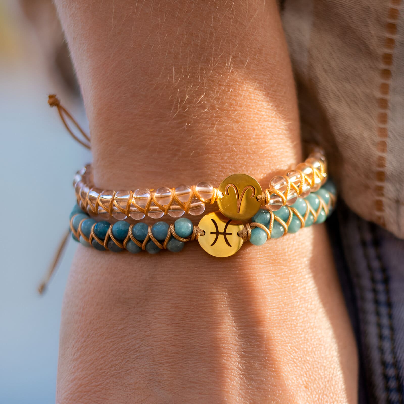 Zeigen Sie Ihre astrologische Identität mit Stil – dieses handgeflochtene Astro-Armband vereint natürliche Schönheit mit der Energie der Sterne. Wählen Sie Ihr persönliches Sternzeichen und genießen Sie die kraftvolle Wirkung der dazugehörigen Edelsteine.