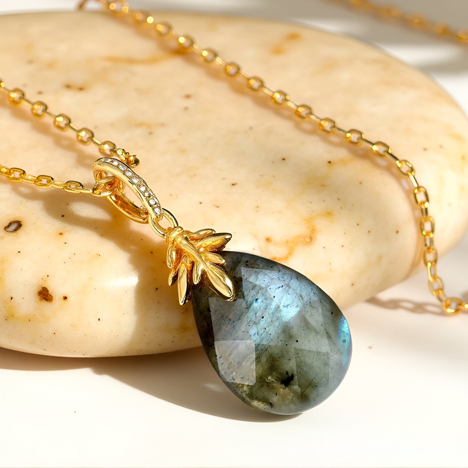 Ein kraftvoller Schutzanhänger für Ihre tägliche Energiehygiene – dieser elegante Talisman mit natürlichem Labradorit stärkt Ihre Aura und schützt Sie vor äußeren Belastungen. Seine irisierenden Reflexe machen ihn zu einem echten Blickfang mit spiritueller Tiefe.