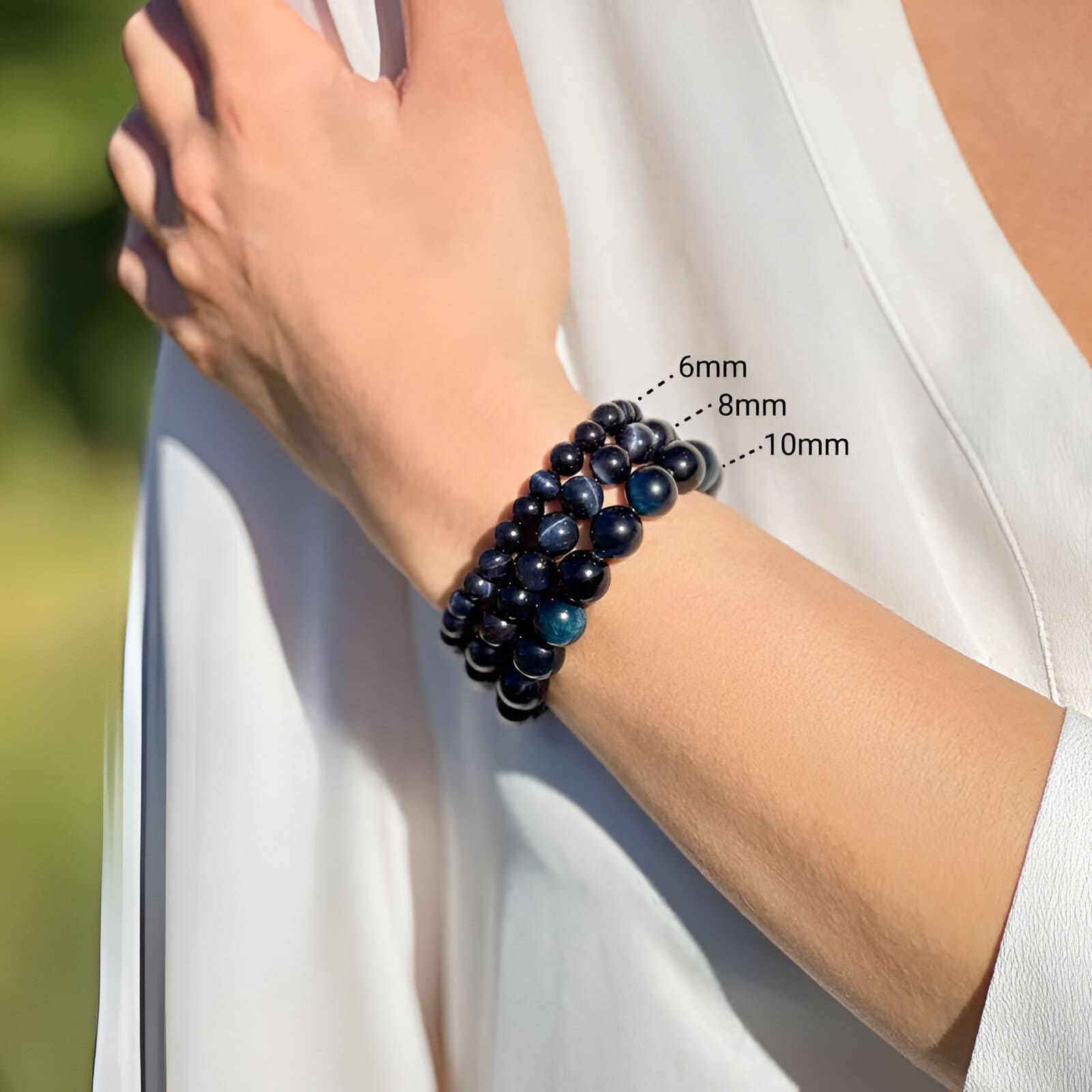 Das tiefblaue Schimmern der Steine zieht nicht nur Blicke an, sondern stärkt Ihre mentale Präsenz und schützt vor äußeren Einflüssen – ein Begleiter für mehr Selbstvertrauen und Offenheit.