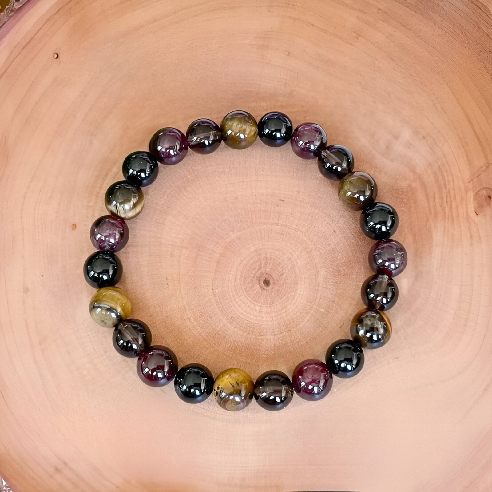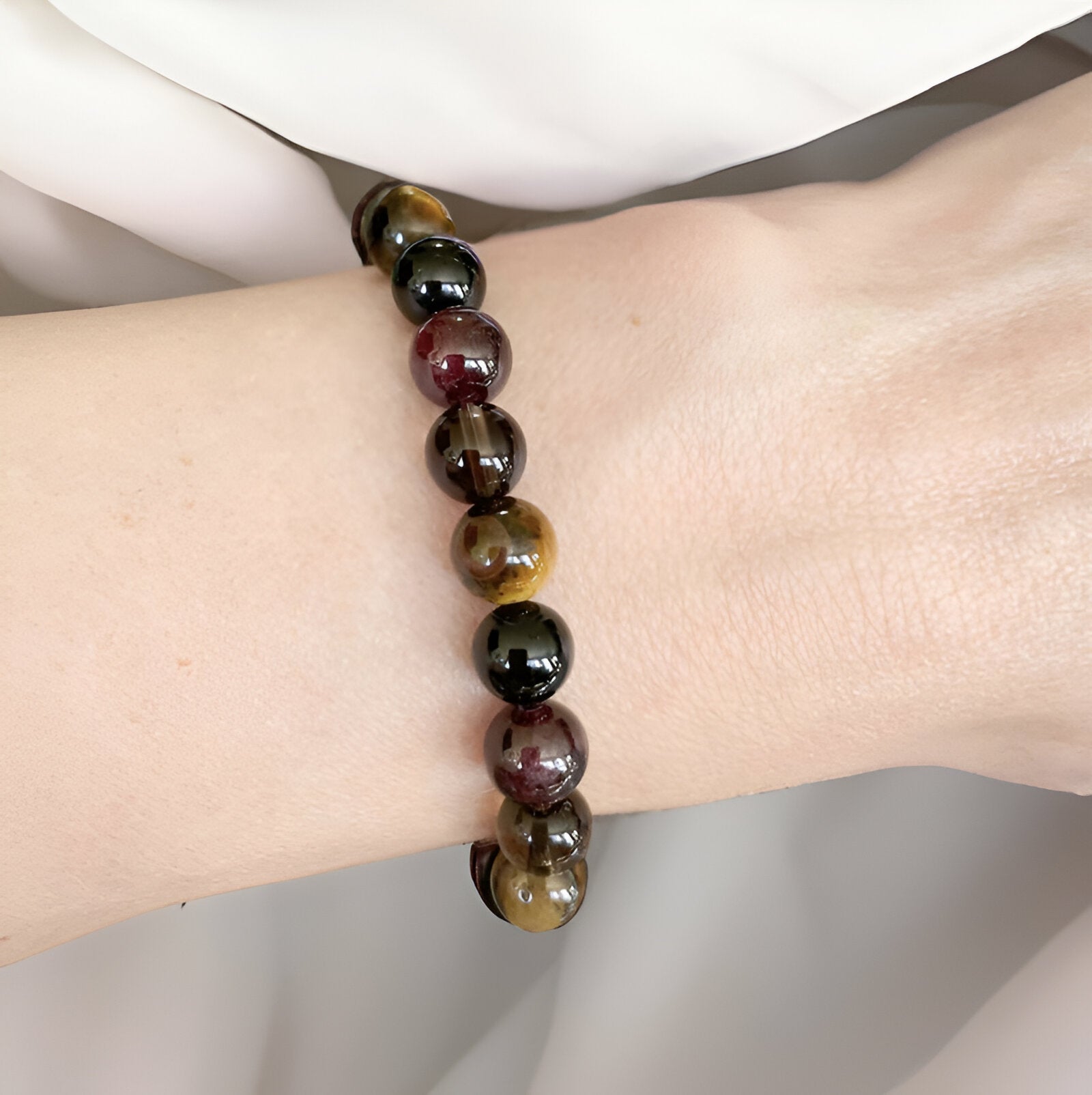Erfolgs- und Schutzarmband mit Tigerauge, Granat, Turmalin und Rauchquarz