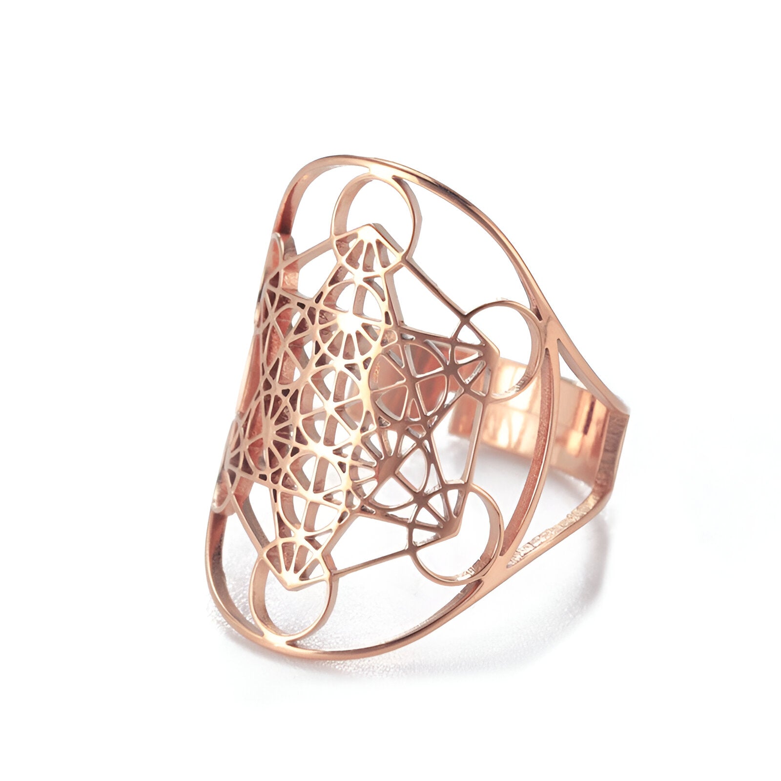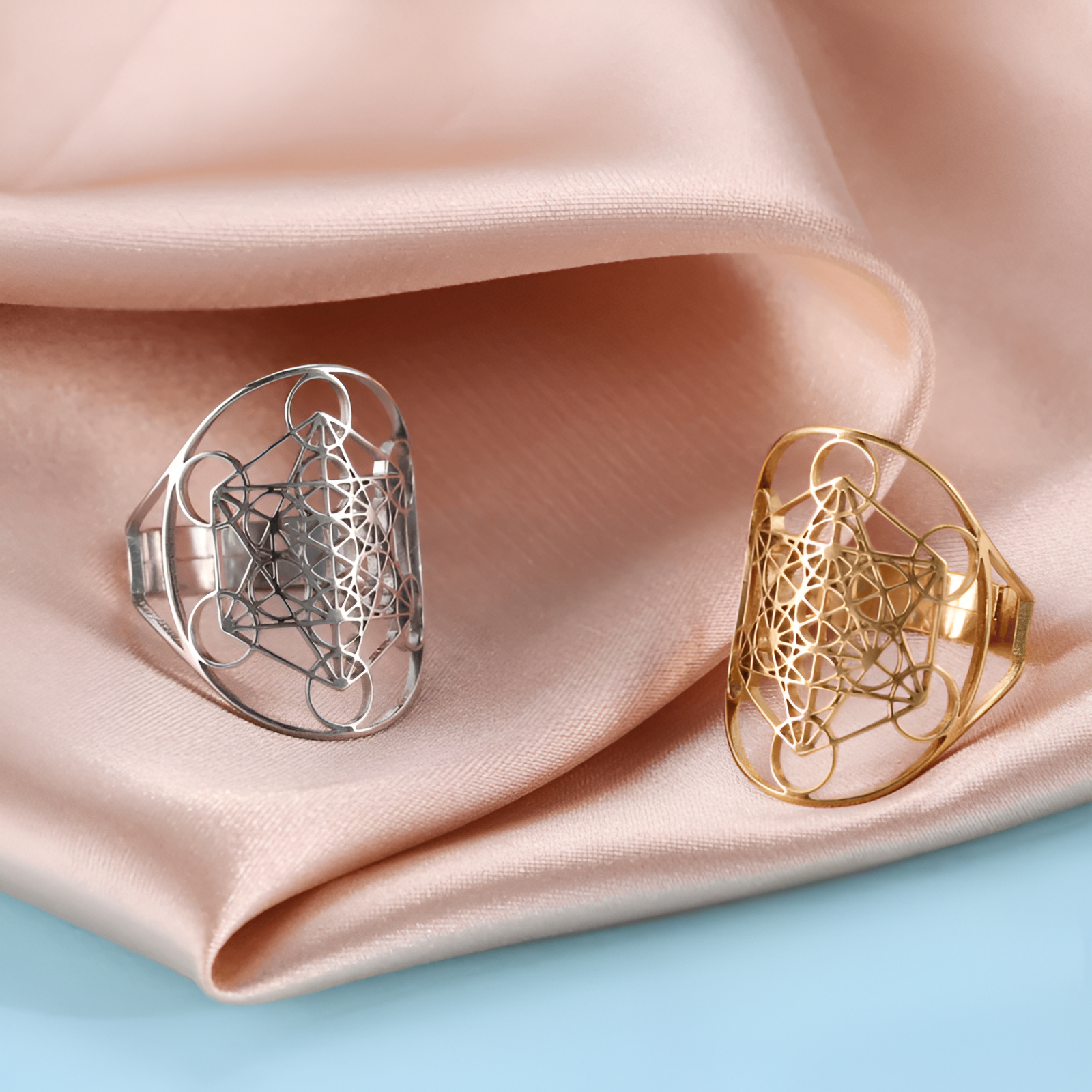 Bleiben Sie mit der spirituellen Welt verbunden – mit dem verstellbaren Metatron-Ring, einem kraftvollen Symbol aus der heiligen Geometrie. Dieses energetische Design hilft Ihnen, Ihren Geist zu zentrieren, Ihre Schwingung zu erhöhen und sich von negativen Einflüssen abzuschirmen.