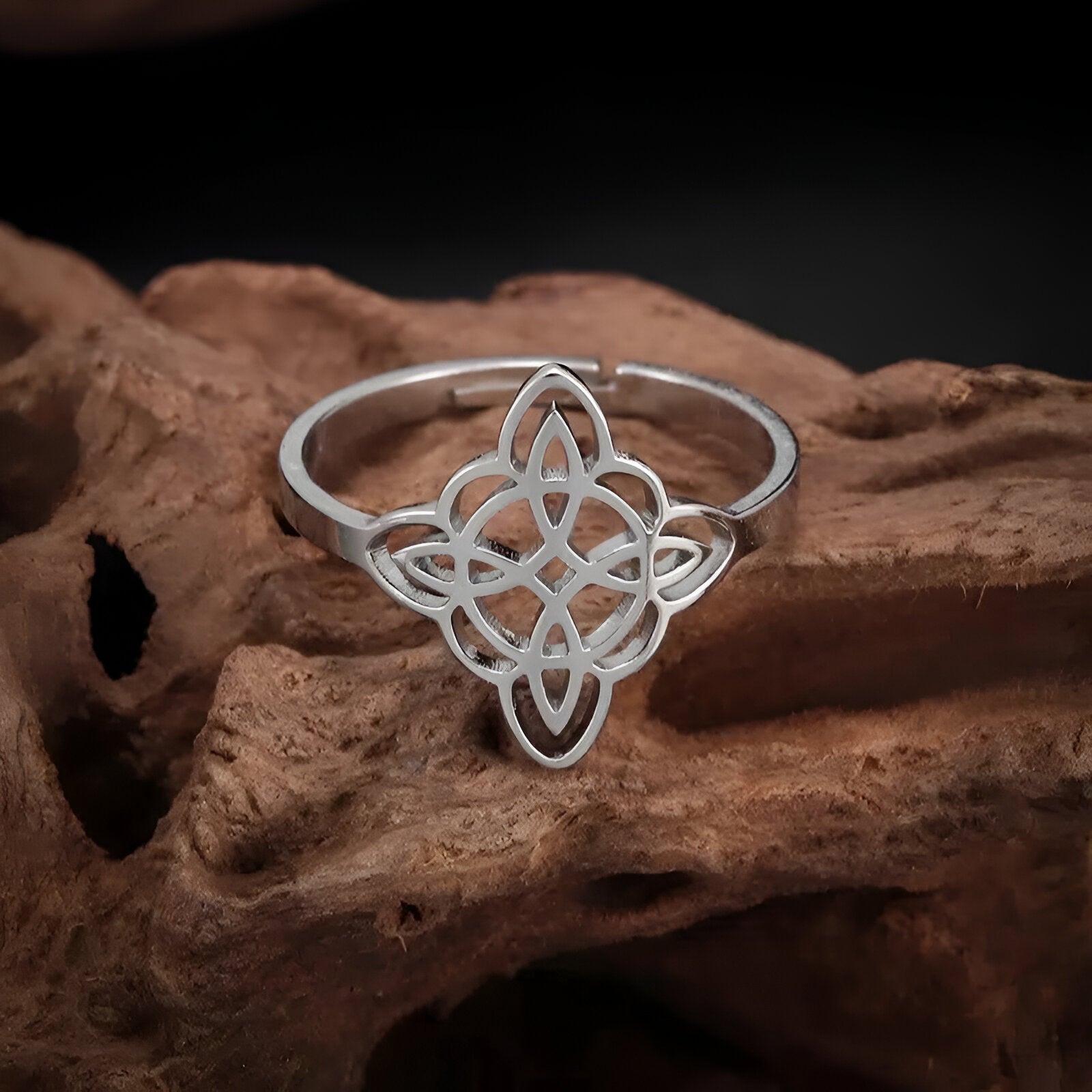Ein stilvoller und bedeutungsvoller Begleiter: Der verstellbare Ring „Ewige Harmonie“ mit dem Symbol des Hexenknotens vereint spirituellen Schutz, innere Ausgeglichenheit und kraftvolle Energie in einem zeitlosen Design.